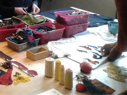 I teach different techniques such as sewing, embroidery, beading and fabric painting and I accompany the participants in the creation of a unique piece of WEARABLE ART. The expression of self-love is the leitmotif of these interactive workshops.